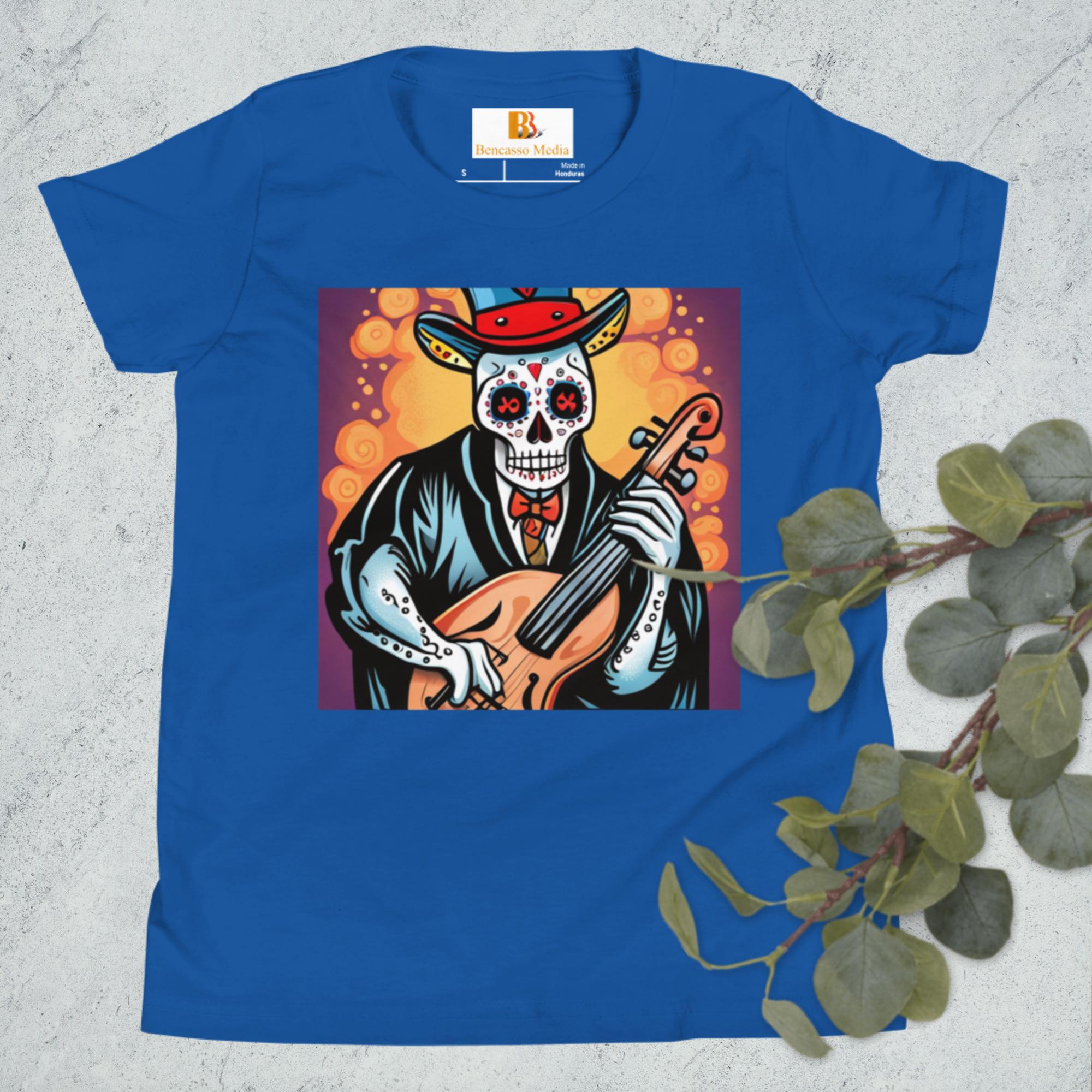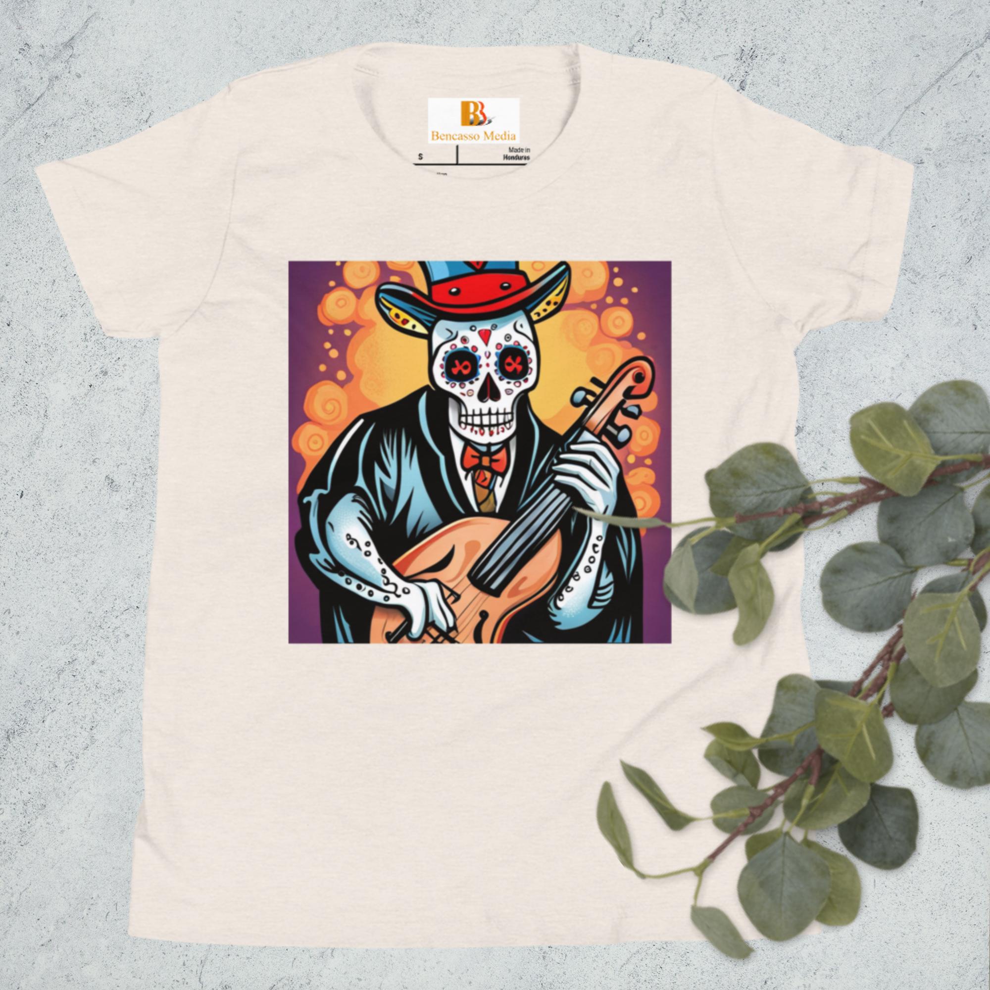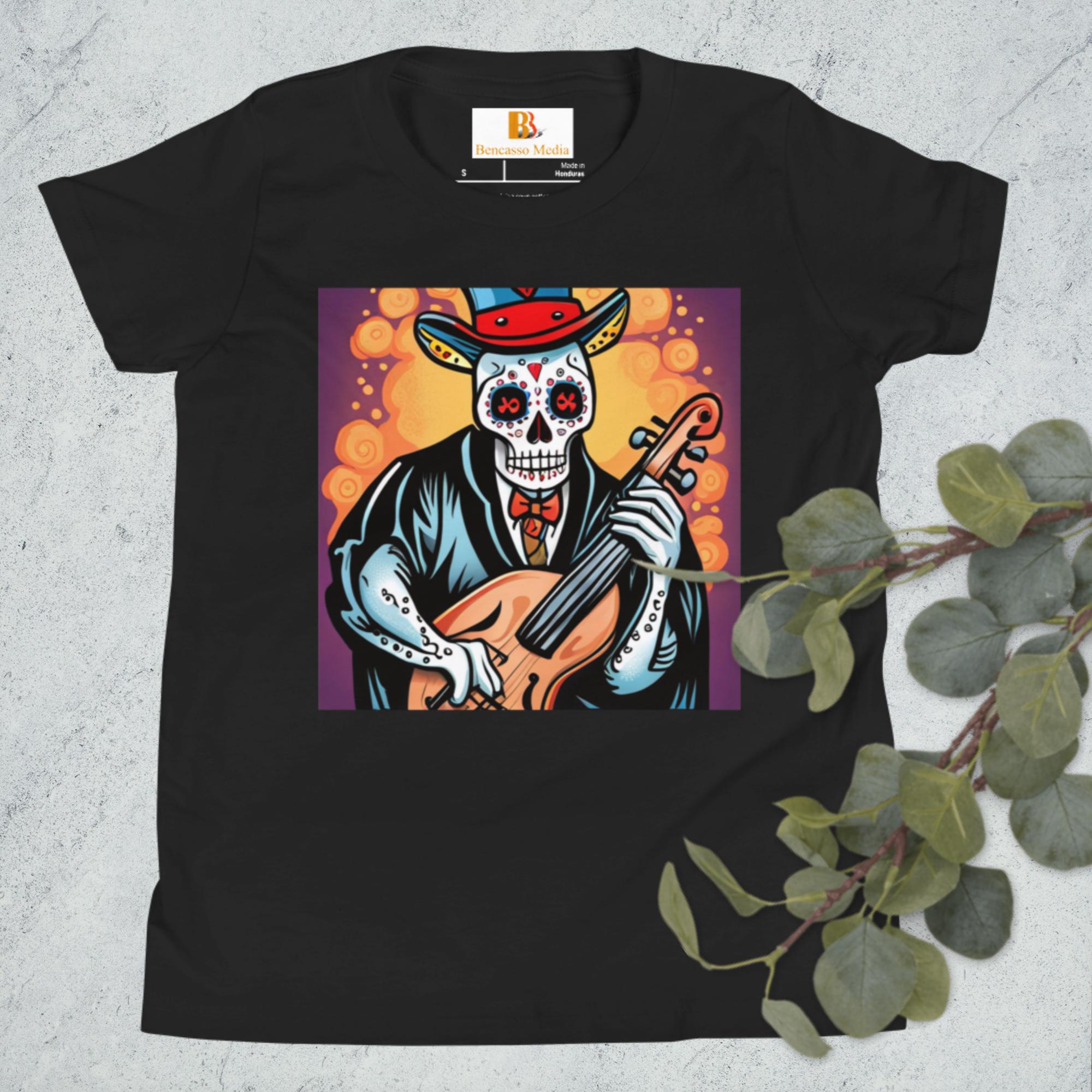 Cassalsanichi Cello Day of the Dead Halloween Youth Short Sleeve T-Shirt