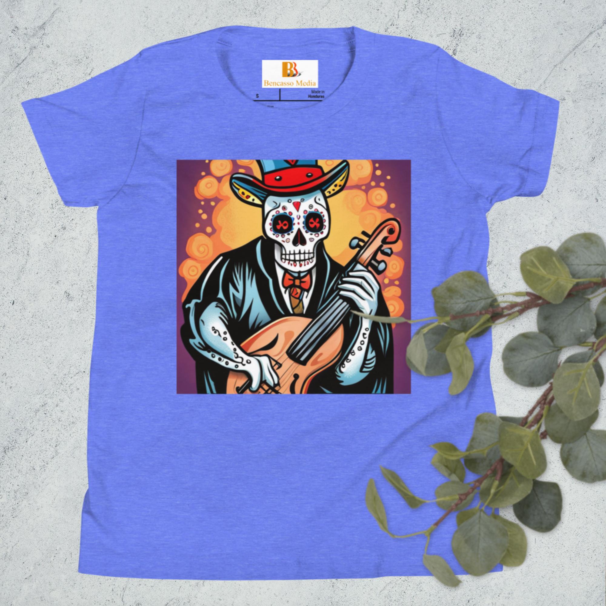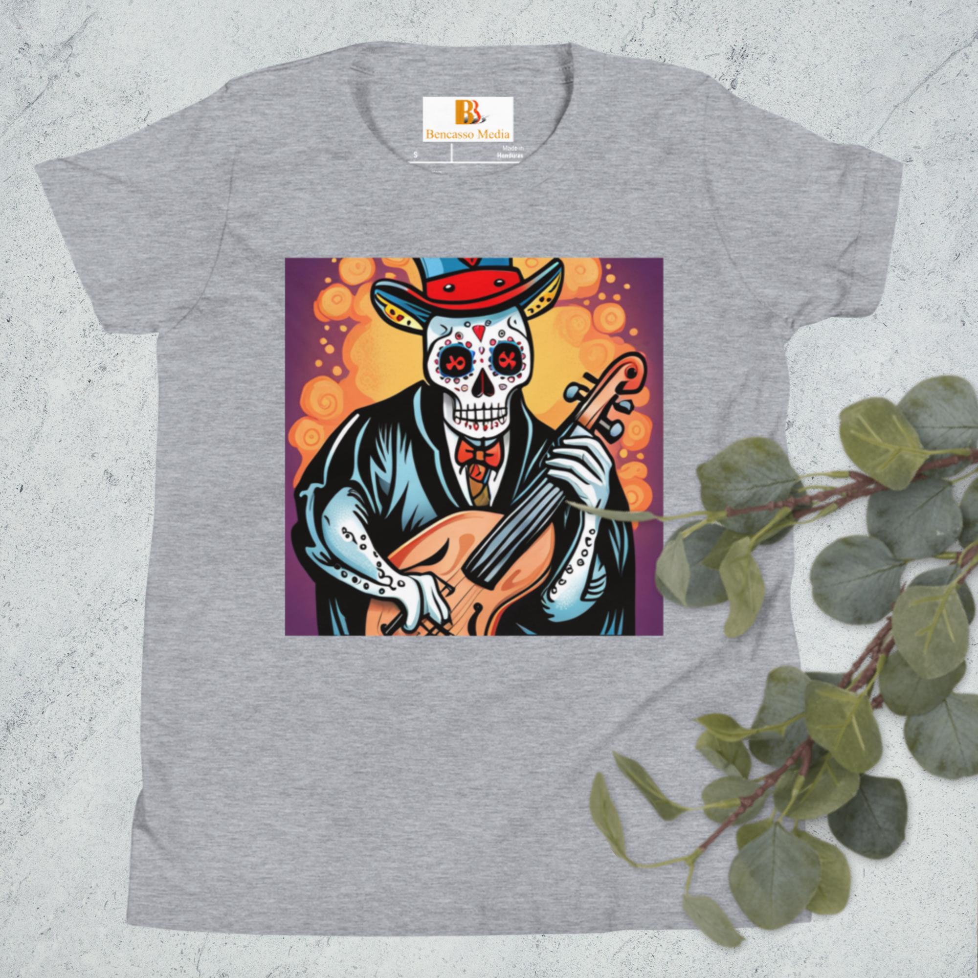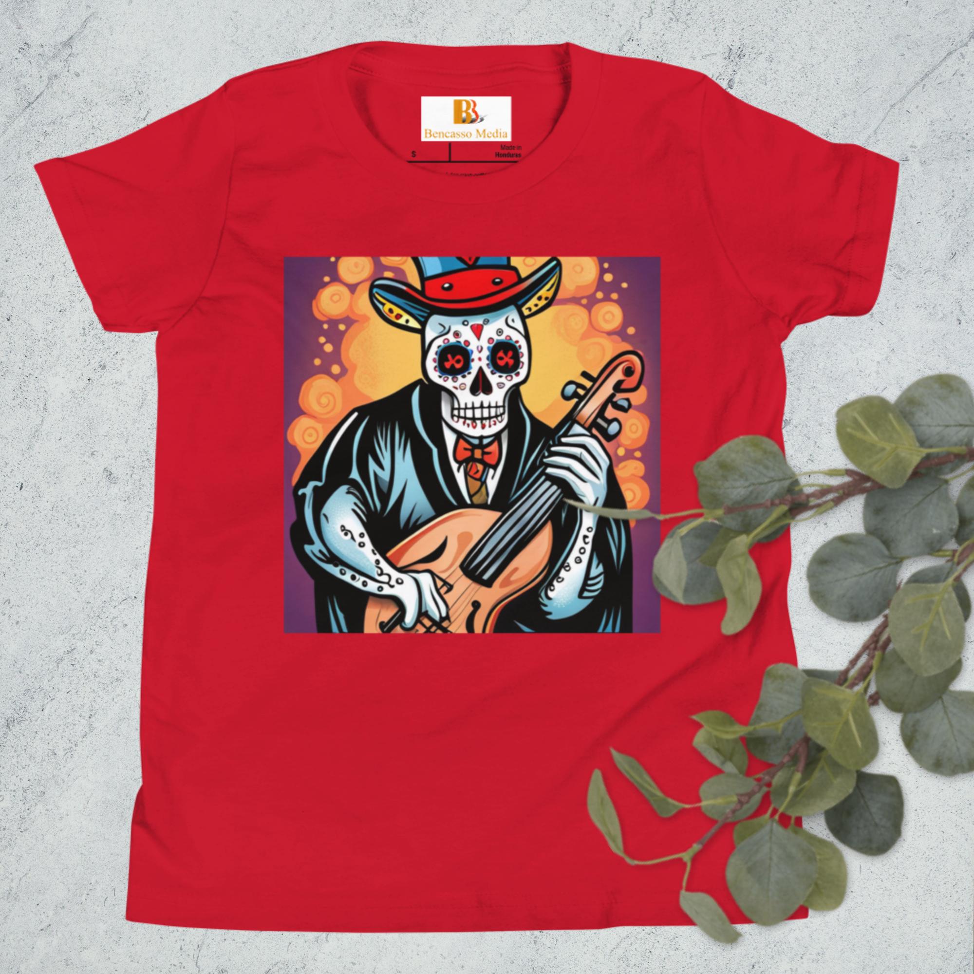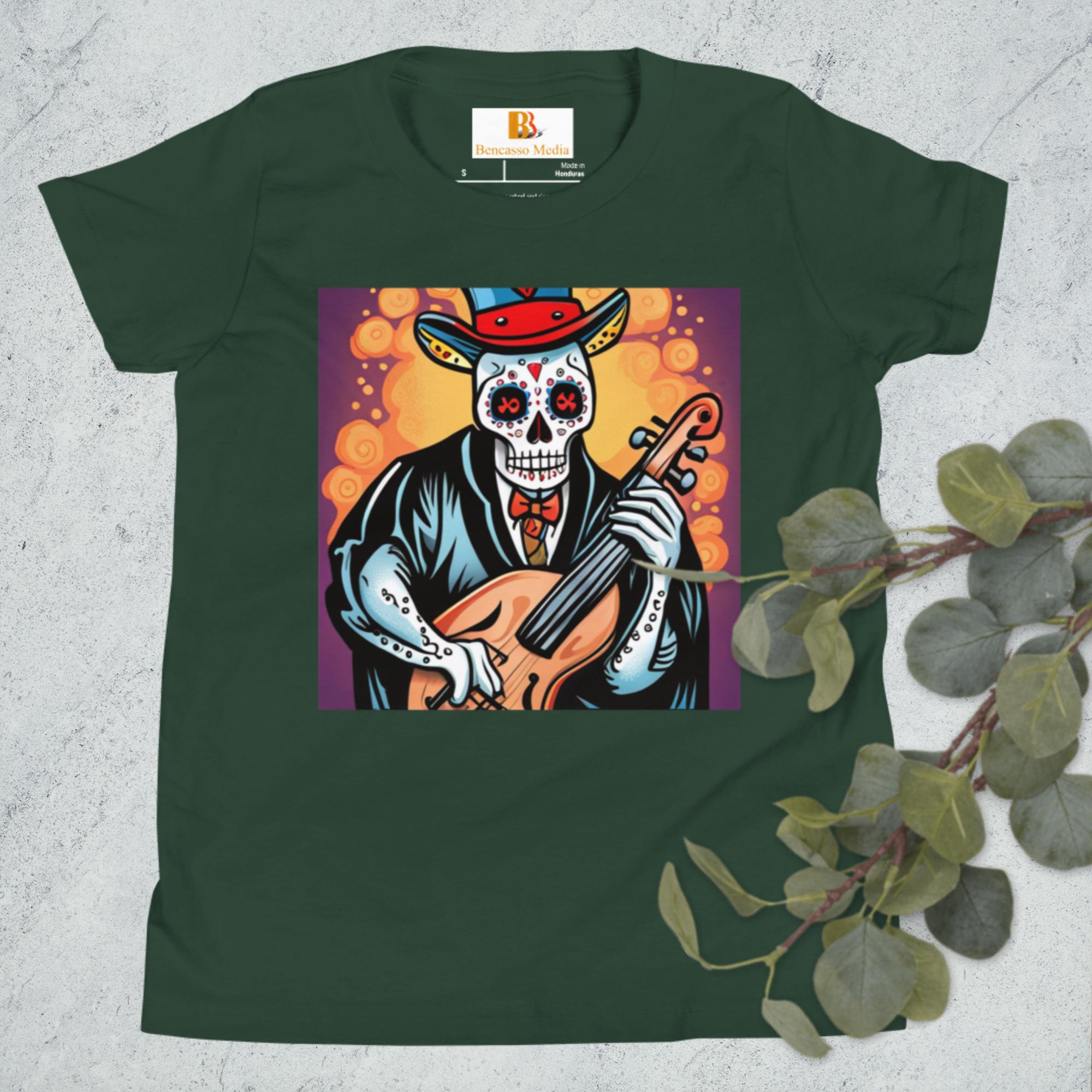 Cassalsanichi Cello Day of the Dead Halloween Youth Short Sleeve T-Shirt