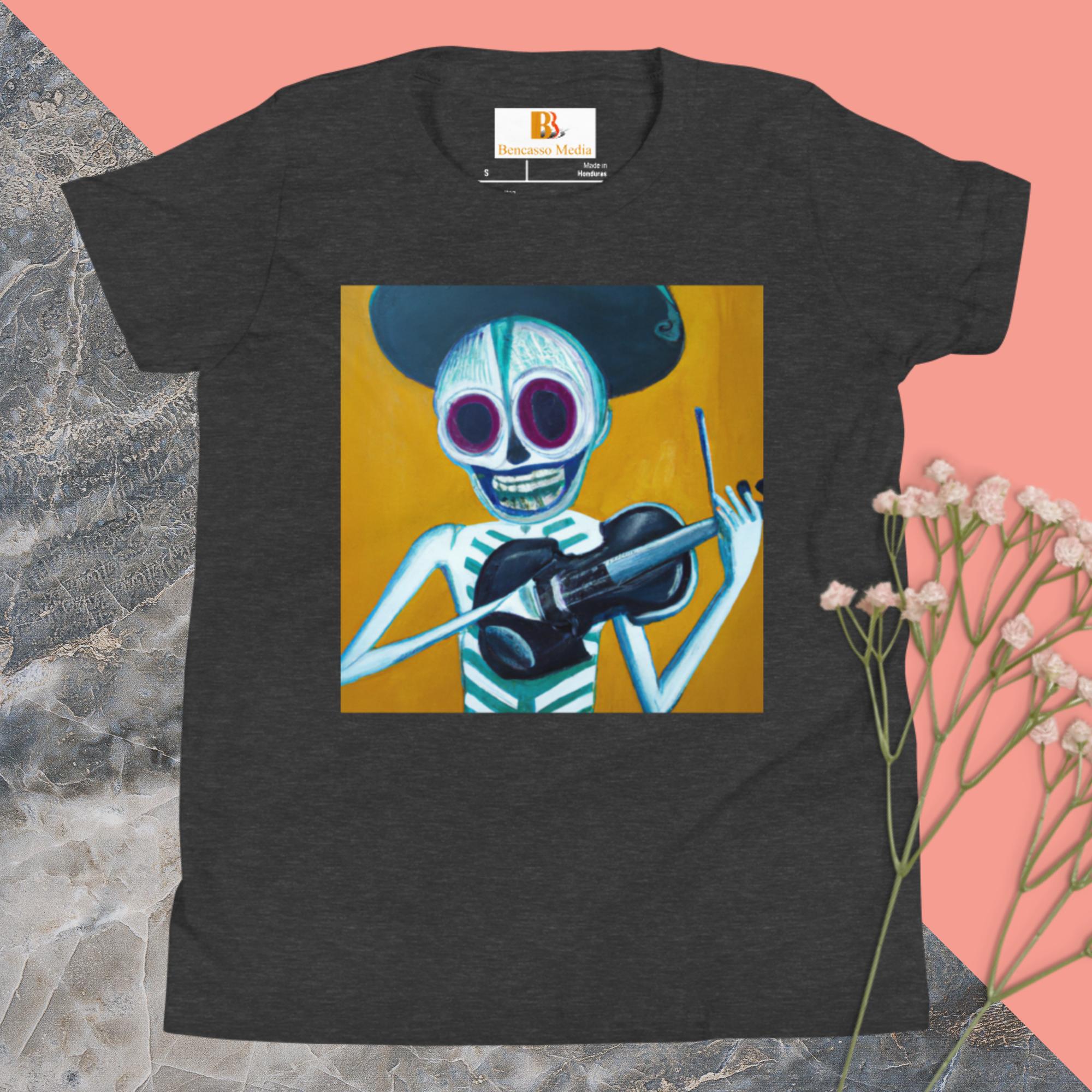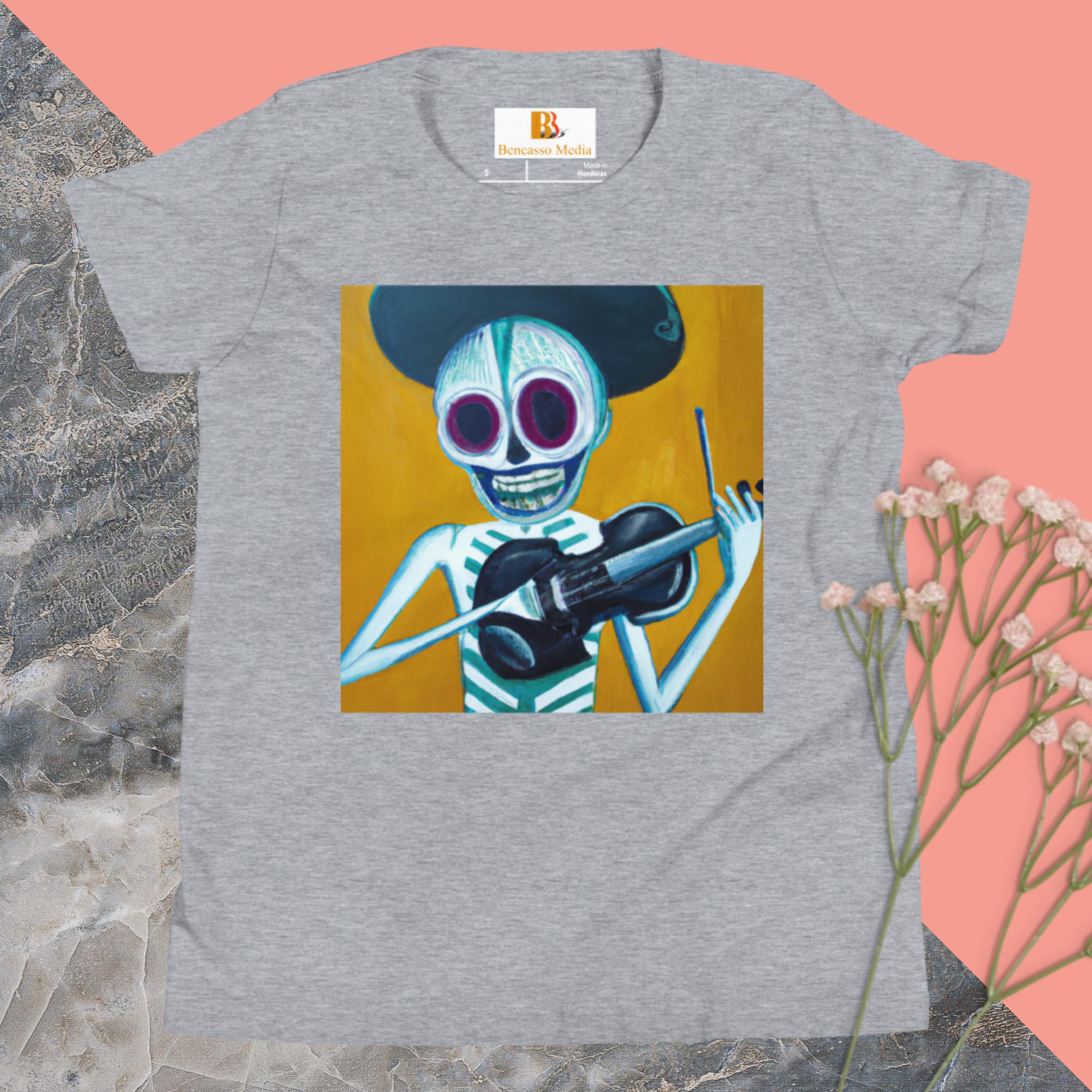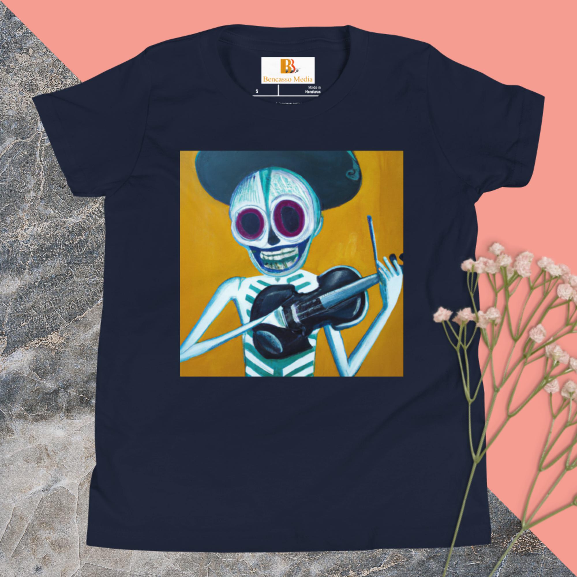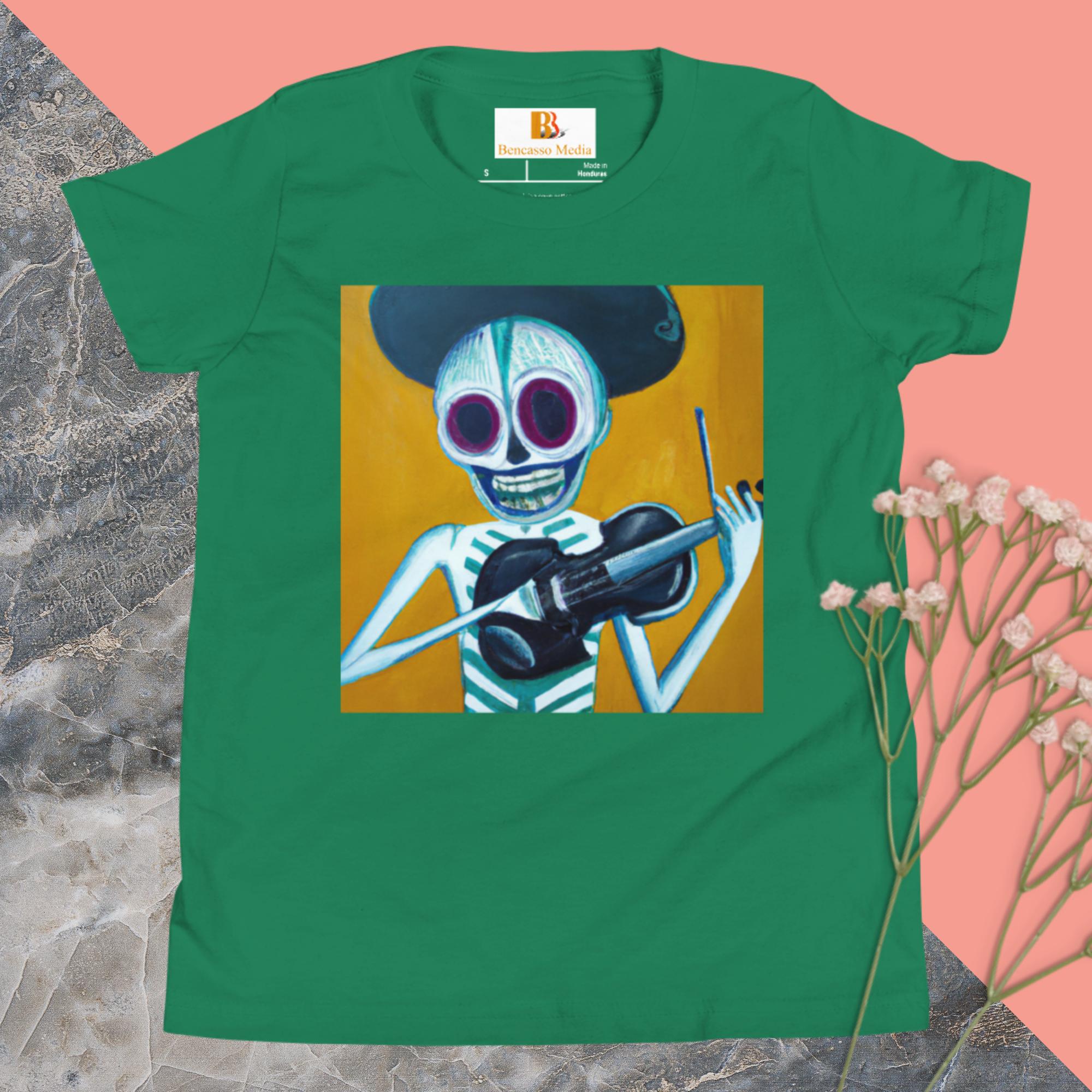 Skeletonichi Strumming Violin Day of the Dead Halloween Youth Short Sleeve T-Shirt
