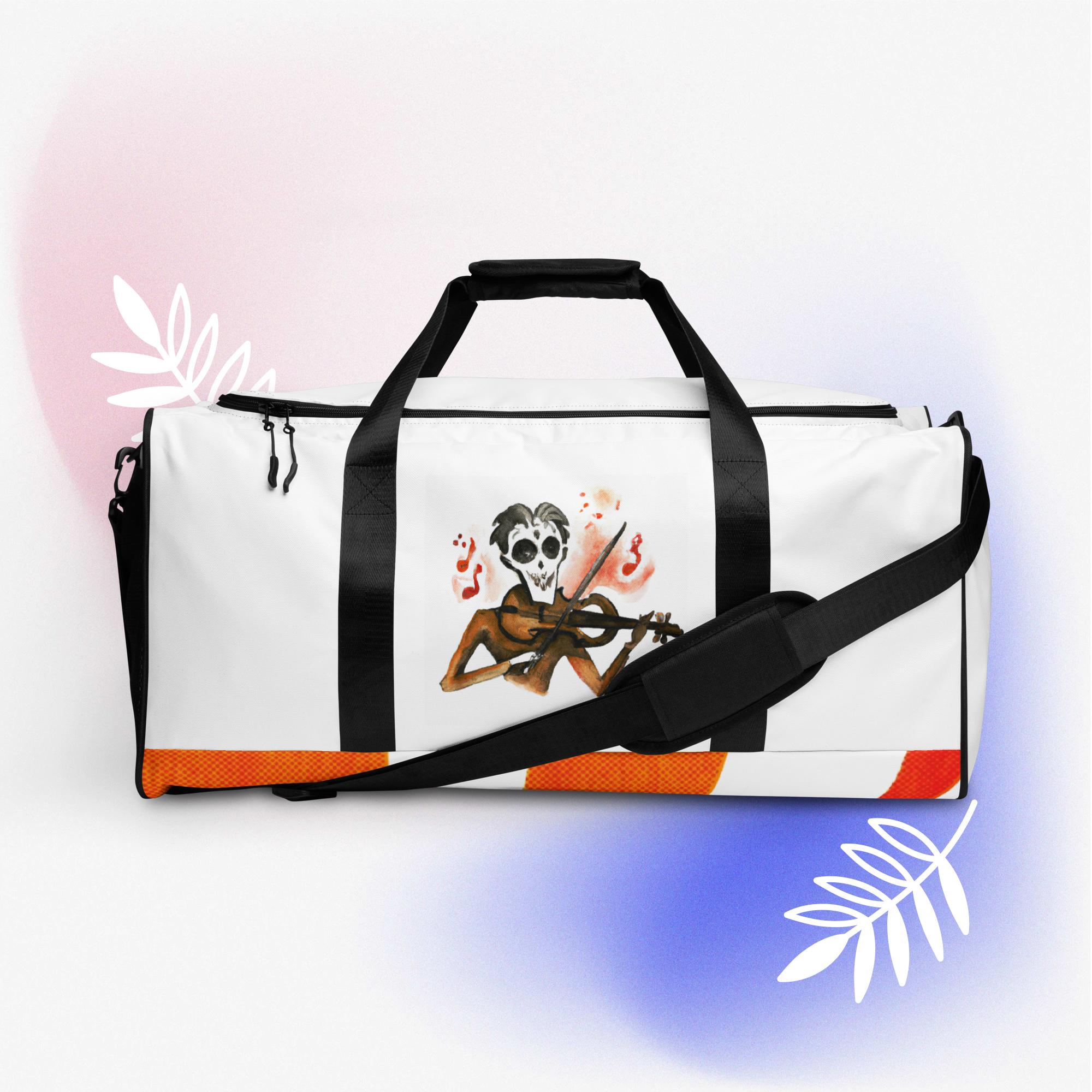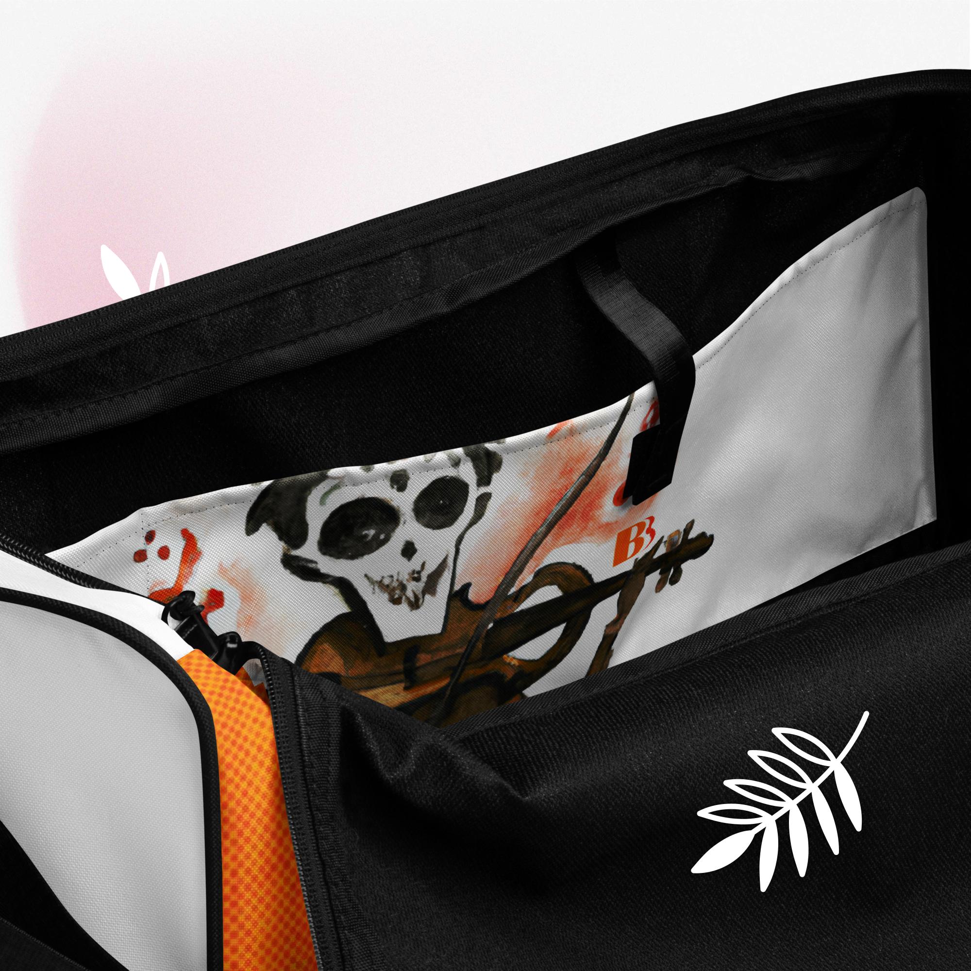 Whether you’re heading to a spooky weekend getaway, hitting the gym, or honoring loved ones during Día de los Muertos, the Zombienichi Violinist Duffle Bag is both stylish and practical. Embrace the supernatural and carry your belongings with this unique and eerie accessory.